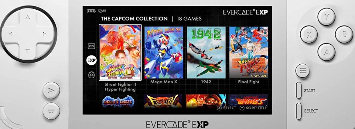 In aggiunta a tutto questo, ogni Evercade EXP include contenuti bonus integrati nel dispositivo. 18 giochi Capcom sono già inclusi all’interno del dispositivo senza necessità di installarli, di riscattare i loro codici o attraverso una cartuccia! 14 grandi giochi arcade e 4 classici per console domestiche ora possono accompagnarti ovunque tu sia! È incluso anche un manuale a colori per le collezioni Capcom.