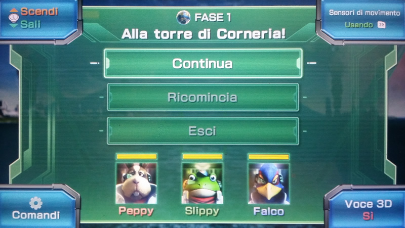 Dove sta la verità? La verità è che i comandi sono modificabili per tornare al gameplay classico che già conoscono tutti quelli che hanno giocato a Star Fox, ma non è possibile eliminare il giroscopio in modo definitivo dal gioco. In realtà noi lo avevamo già segnalato in fase di recensione, ma abbiamo preferito scrivere un articolo dedicato esclusivamende ai controlli visto quanto sia dibattuto questo “problema”. Come potete vedere dalle foto che riprendono lo schermo del gamepad con il gioco in pausa, il giocatore può cambiare la voce in alto a destra da “Sensori di movimento: sempre attivi” a “Sensori di movimento: usando ZR”, ossia solo quando si spara.